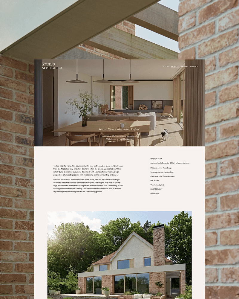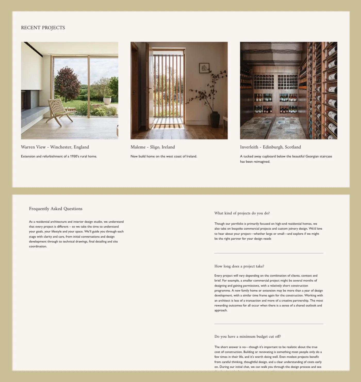 Our strategy was simple: let Dee’s work speak for itself. We focused on creating a portfolio-led site where her imagery could take the lead, supported by minimal copy and intentional design details. By combining elegant typography, subtle line accents, and generous whitespace, the site mirrors the restful, luxurious qualities of her own interiors. Beyond showcasing her portfolio, we also carved out space for her journal and achievements, helping potential clients see not just her projects, but her creative depth and professional credibility.